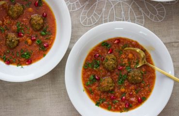 My childhood in Iran during the autumn months meant the arrival of pomegranates, and with it the cold winter months.  The pomegranates would be quartered for us, and we’d pick through them for seeds. An after-school snack, dessert, something to keep us occupied and out of the way of the adults for a while.  But what I loved most was sucking the juice right out of the pomegranate.  No juicers, no special equipment.  Just a strong yet careful pair of hands to do the squeezing.