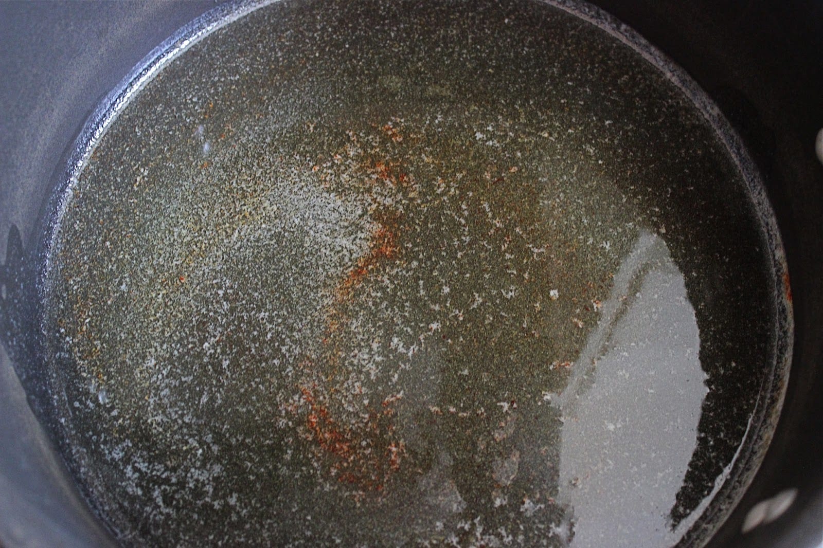 You have to use a non-stick pot or a deep non-stick pan.  A well-seasoned cast iron works too. DO NOT USE A STAINLESS STEEL POT.  To get the most tahdig, try to use a pot or pan with a flat bottom and one large enough that will give the rice plenty of room to expand.  If your pot or pan is too small the rice will clump together.  For this recipe I used a pot with a 10″ bottom.  If using a pan, make sure you have a lid that will tightly fit it.  The zeery – heat diffuser – is used to ensure the tahdig doesn’t burn.  If you don’t have one don’t worry about it.  It’s just extra insurance.
