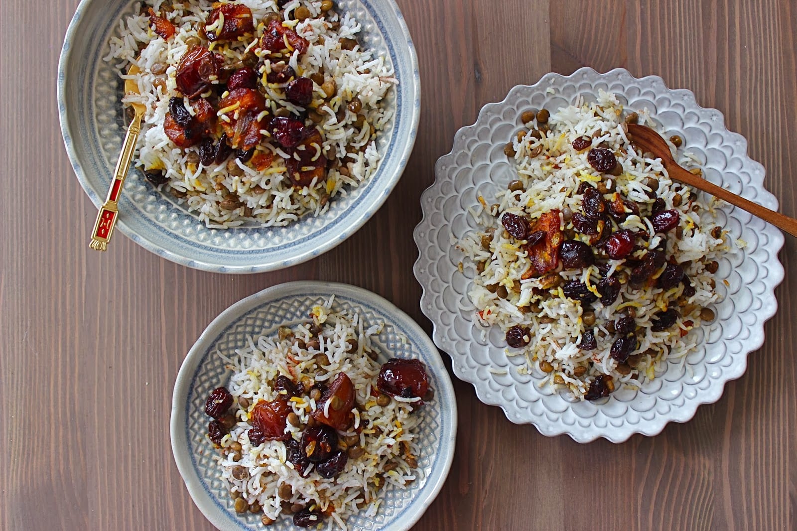 LENTILS AND RICE DISH WITH TAHDIG AND DRIED FRUITS – ADAS POLO