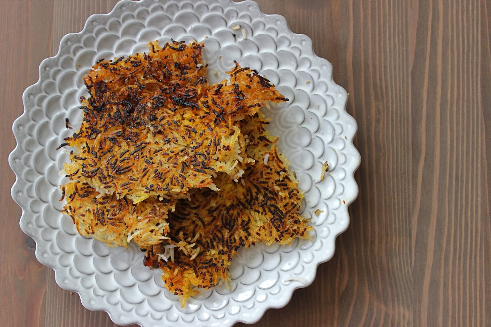 * If you don’t want to make tahdig (but you really should!) you can prepare white or brown basmati rice, prepare the lentils as described below, just make sure to add a little more water so they cook through, prepare the dried fruits mixture as described below and mix everything together when serving.