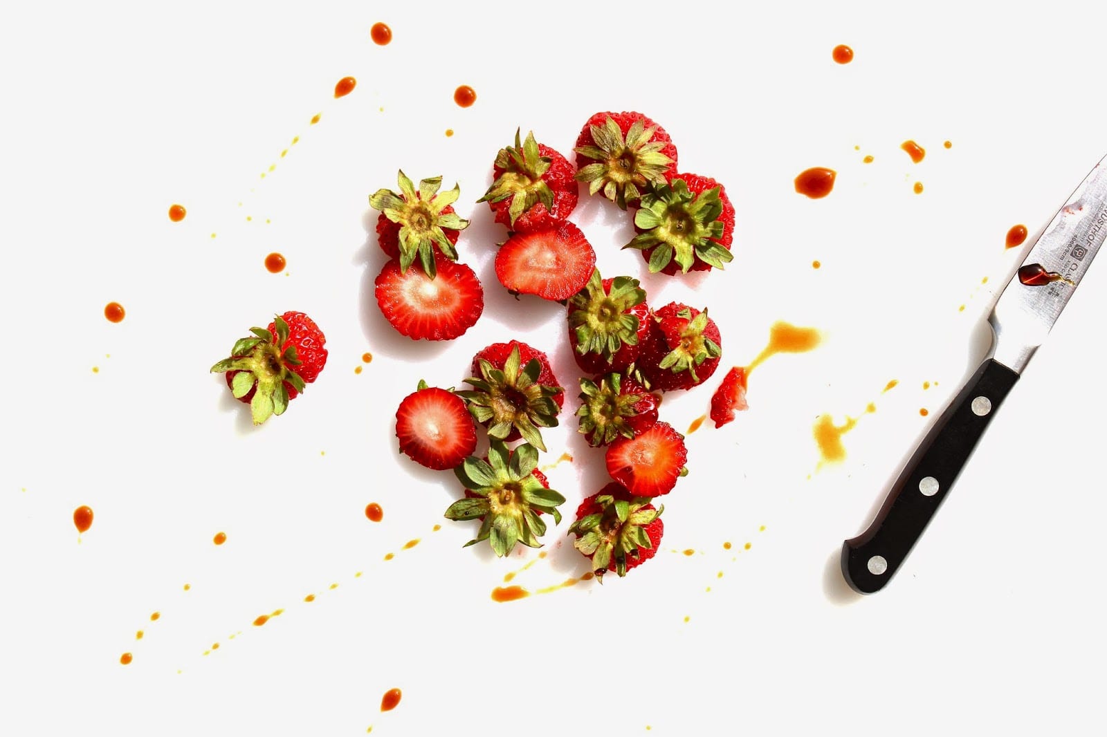 You stain your hands blood red from the fresh strawberries.   Many times you’ve had strawberries macerated in balsamic, but since you usually don’t have any balsamic around and you’re not willing to make a trip to the store, you reach for the bottle of pomegranate molasses you always have on hand.  You watch the syrup languidly ooze out of the bottle and bathe the strawberries.  You set the bowl aside and allow the flavors to meld and dance in perfect harmony.  You ask your girls – your taste testers – your shadows – your Moon and Sun – what else the macerated strawberries need.  They savor their bite, licking their lips with big smacking sounds, and confidently declare it needs salt.  It doesn’t need salt.  They always say it needs salt because that’s what you always say.  Your words, your opinions, still carry weight.  You are still their Universe.  You remind yourself it won’t be this way forever.  Time is fickle, time is irreverent.
