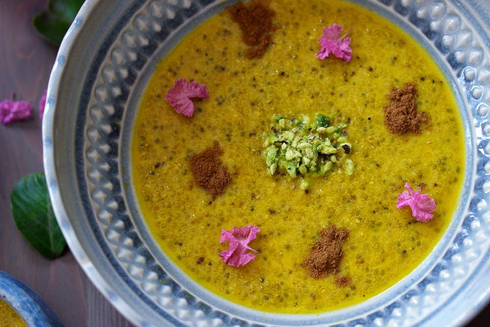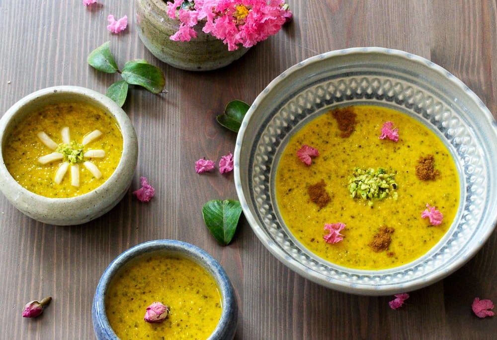 Yellow Flame Pudding – A Saffron and Rose Chia Seed Pudding – Sholeh Zardeh Tokhmeh Sharbati – That Woman