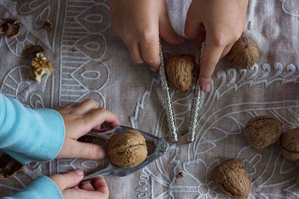 Serve the warm and tangy crimson-hued Aash-e Anar as the girls crack open the walnuts.  Duck as walnut shells ricochet off the walls.
