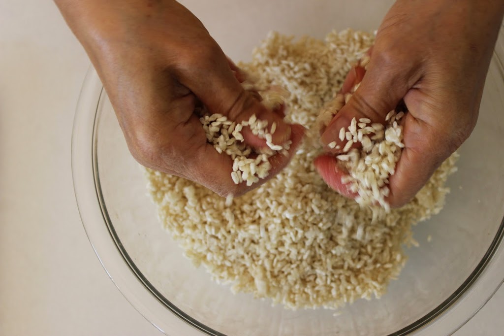 Kumi has given me the measurements by metric weight as it is most accurate, so I highly recommend using a scale when measuring out the ingredients. The measurements below are for a 1 liter glass jar. You can also easily halve this recipe. Any left over rice koji can be stored in the freezer for up to 6 months.