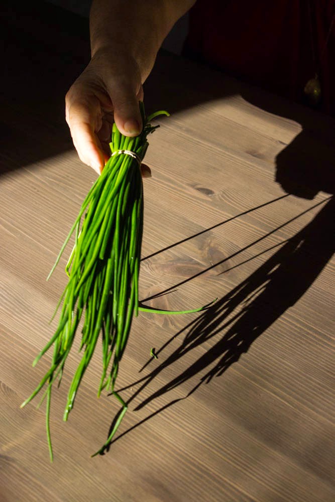 You glance up at the clock, hurriedly grab the sorted bunches of parsley, dill and chives and escort them to the sink.  Scattering the herbs across the cool water.