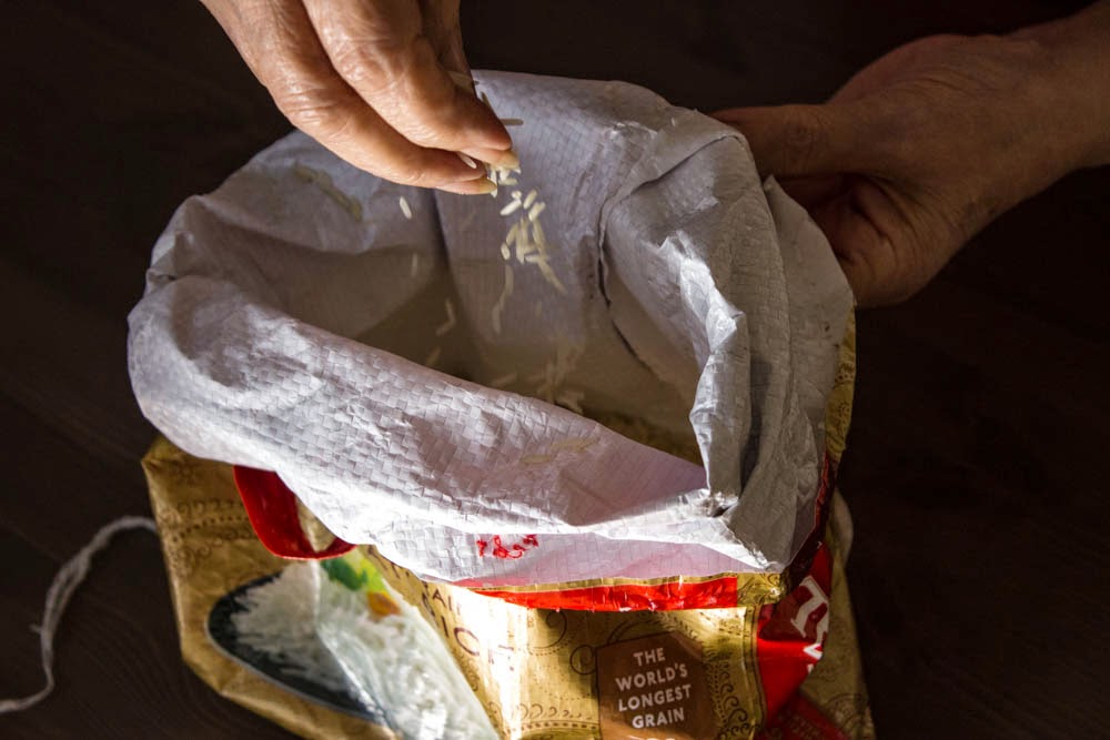 You drain the rice as now she gently nudges you out of the way to scatter some fresh water over the rice.